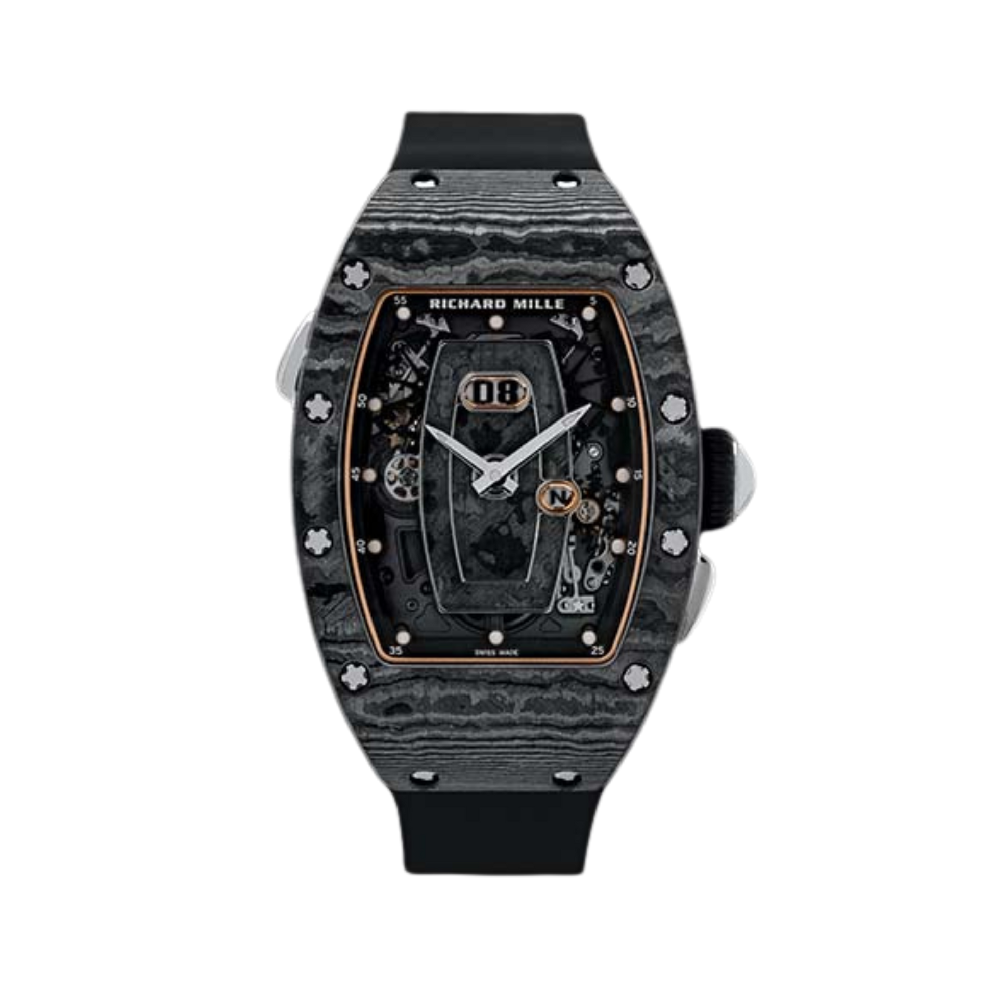 The RM 037 embodies the essential combination of beauty and elegance with technical features and attention to detail that Richard Mille is known for and which form an integral part of the most exclusive mechanical horological creations.