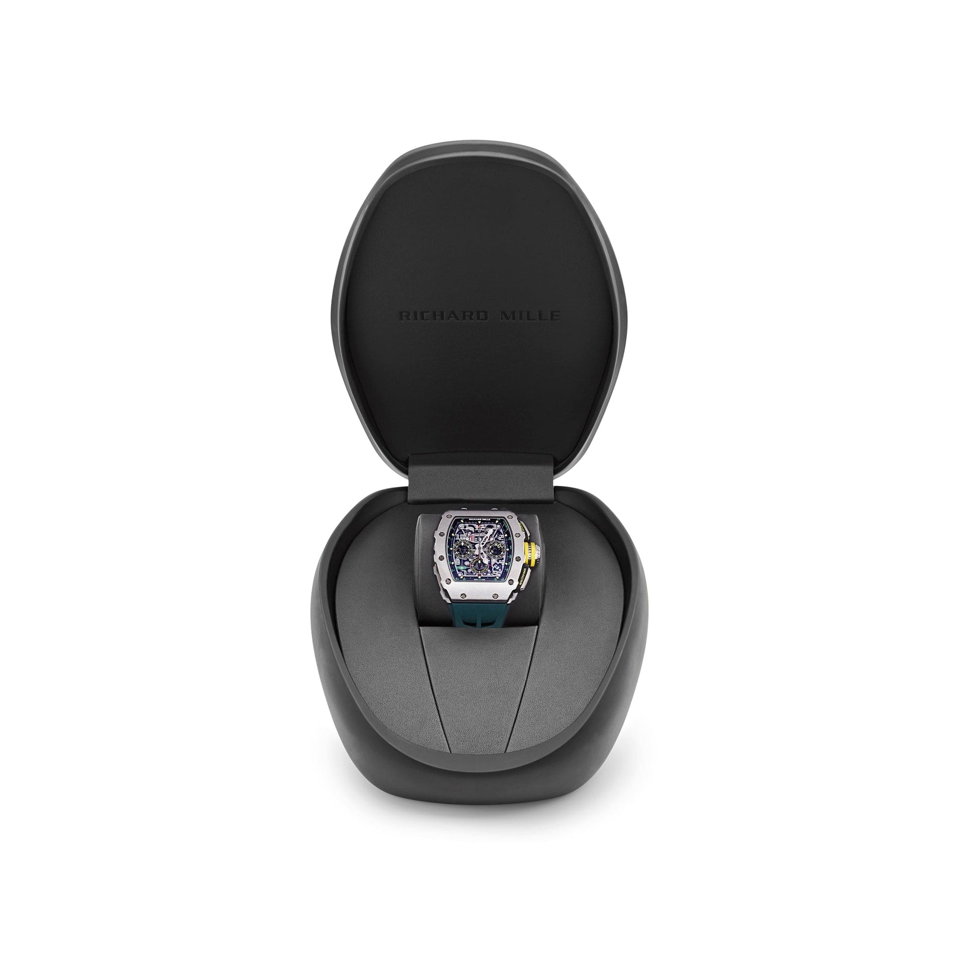 Paired with a rubber strap for added comfort and versatility, the RM 11-03 Titanium is a standout in Richard Mille’s collection, appealing to collectors who seek a high-performance, contemporary timepiece that pushes the boundaries of horological innovation.