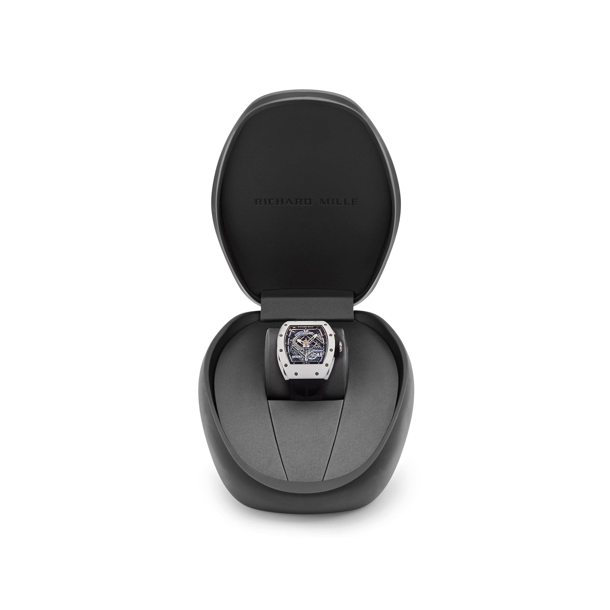The Richard Mille RM 30-01 is a technical marvel, combining avant-garde materials with groundbreaking innovation, features a sleek white ceramic case that is lightweight yet incredibly durable, embodying the cutting-edge engineering for which Richard Mille is renowned. The 50mm x 42.7mm tonneau-shaped case showcases the brand’s signature architecture with its distinctive curves and contrasting finishes.