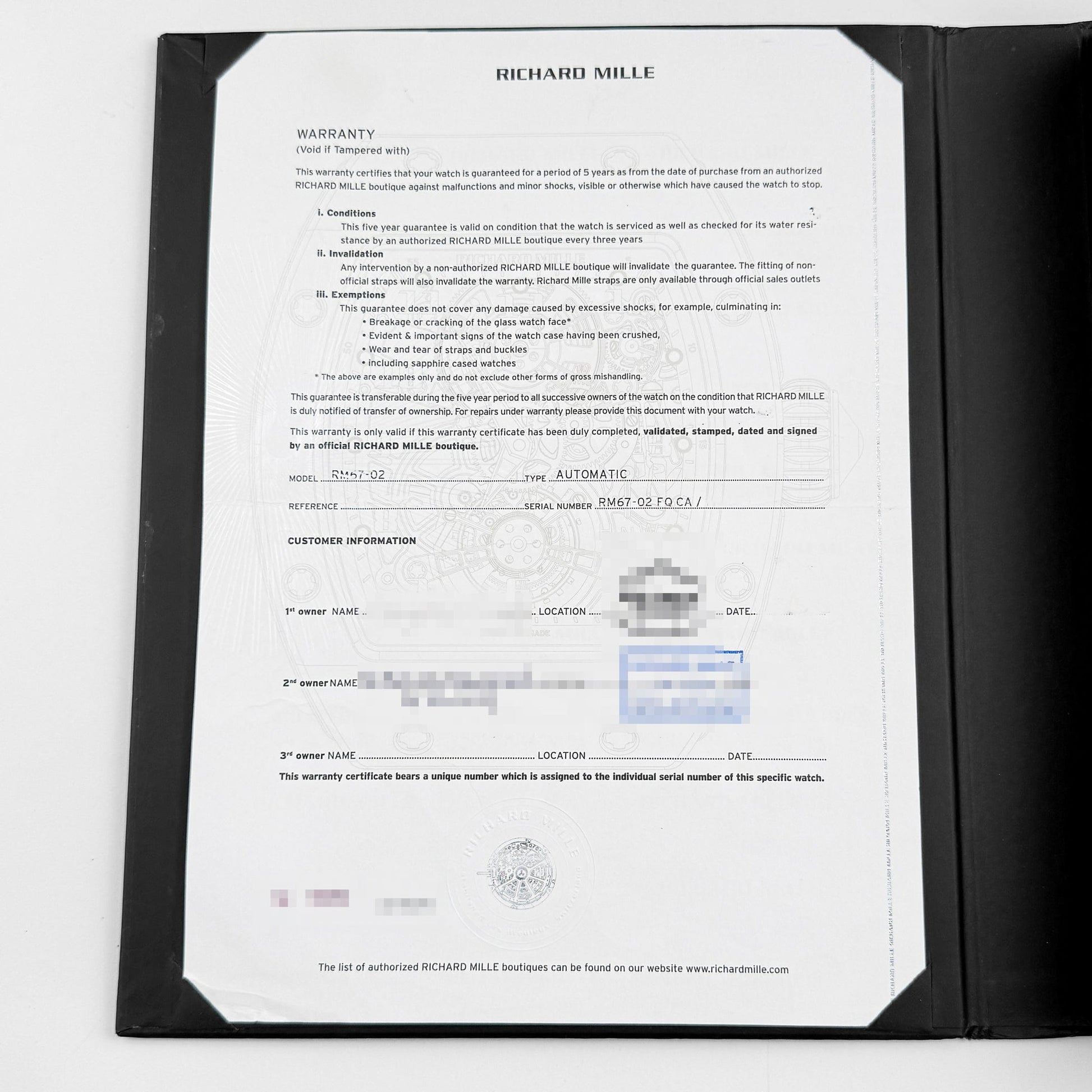 The Richard Mille RM 67-02 'Alexander Zverev' in Carbon TPT is a high-performance timepiece designed in collaboration with the professional tennis player. The lightweight yet durable Carbon TPT case ensures exceptional strength, while the automatic movement provides precision and reliability. Inspired by Zverev’s athletic excellence, this timepiece features a sporty, modern design and is perfect for collectors who appreciate cutting-edge materials and performance-driven luxury.