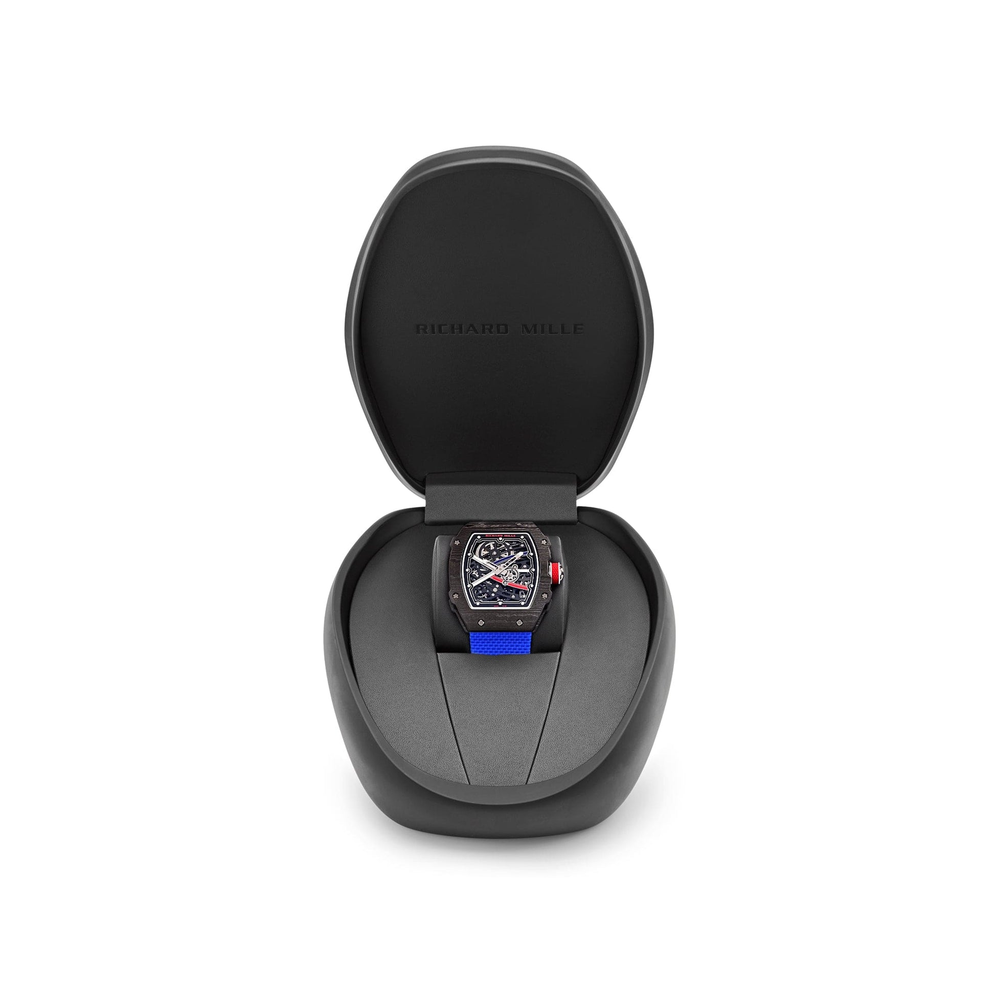 The skeletonized dial showcases the intricate mechanics beneath, with blue accents representing Ogier’s national colors. Engineered for active wear, the watch is paired with an ultra-light elastic strap, ensuring maximum comfort during the most intense activities. At just 32 grams, this model is one of the lightest automatic watches in the Richard Mille lineup. Perfect for collectors and motorsport enthusiasts, the RM 67-02 'Sébastien Ogier' combines cutting-edge materials with technical excellence and a tribute to a world-class athlete.