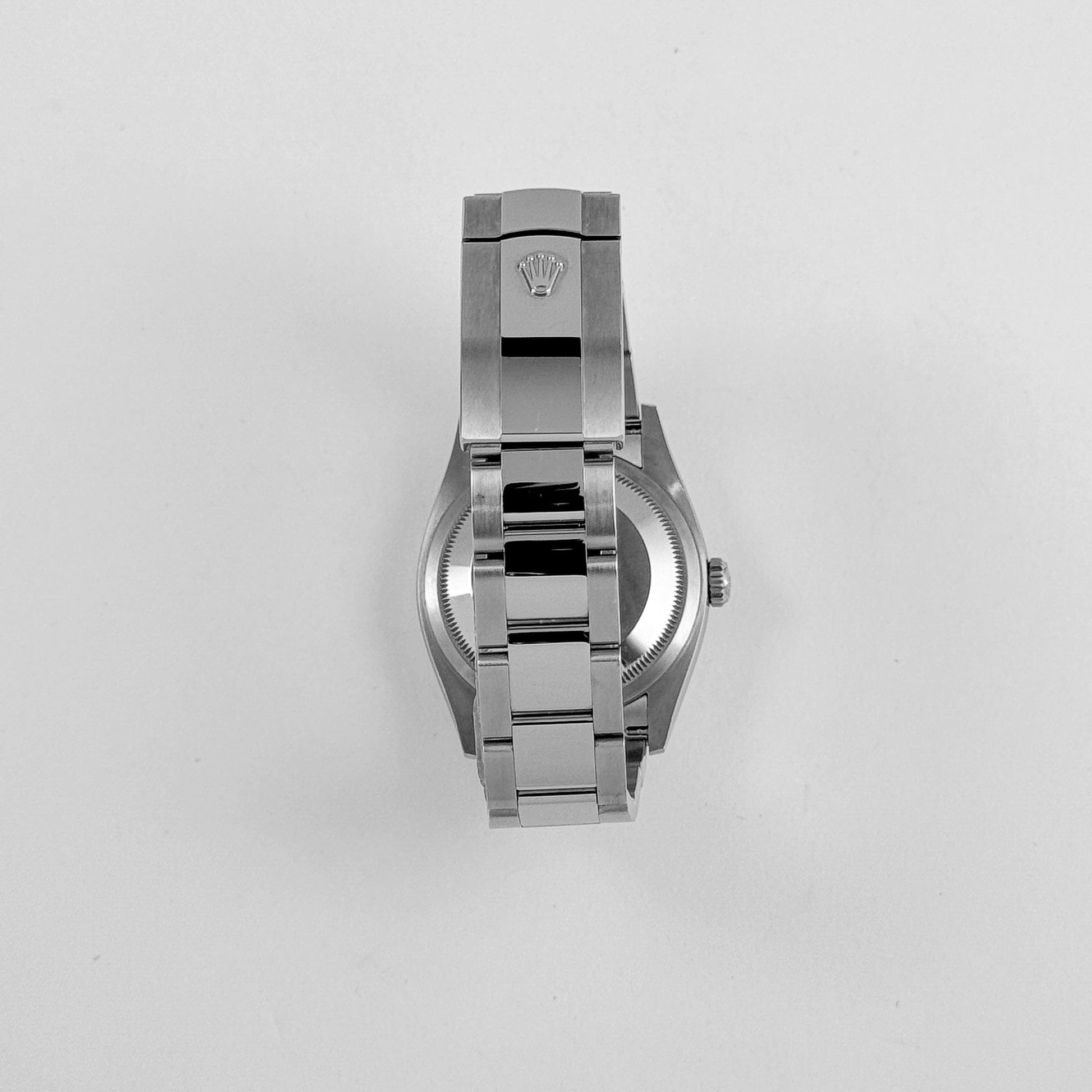 Luminous baton hour markers and hands ensure excellent readability, while the date window at 3 o’clock, magnified by Rolex’s signature Cyclops lens, adds practical functionality. Paired with the durable and comfortable Oyster bracelet, known for its robust three-link construction, the Datejust 126200 seamlessly transitions from formal to casual occasions. This watch is an ideal choice for those seeking a classic Rolex with a contemporary edge, perfectly showcasing the brand’s timeless craftsmanship and attention to detail.
