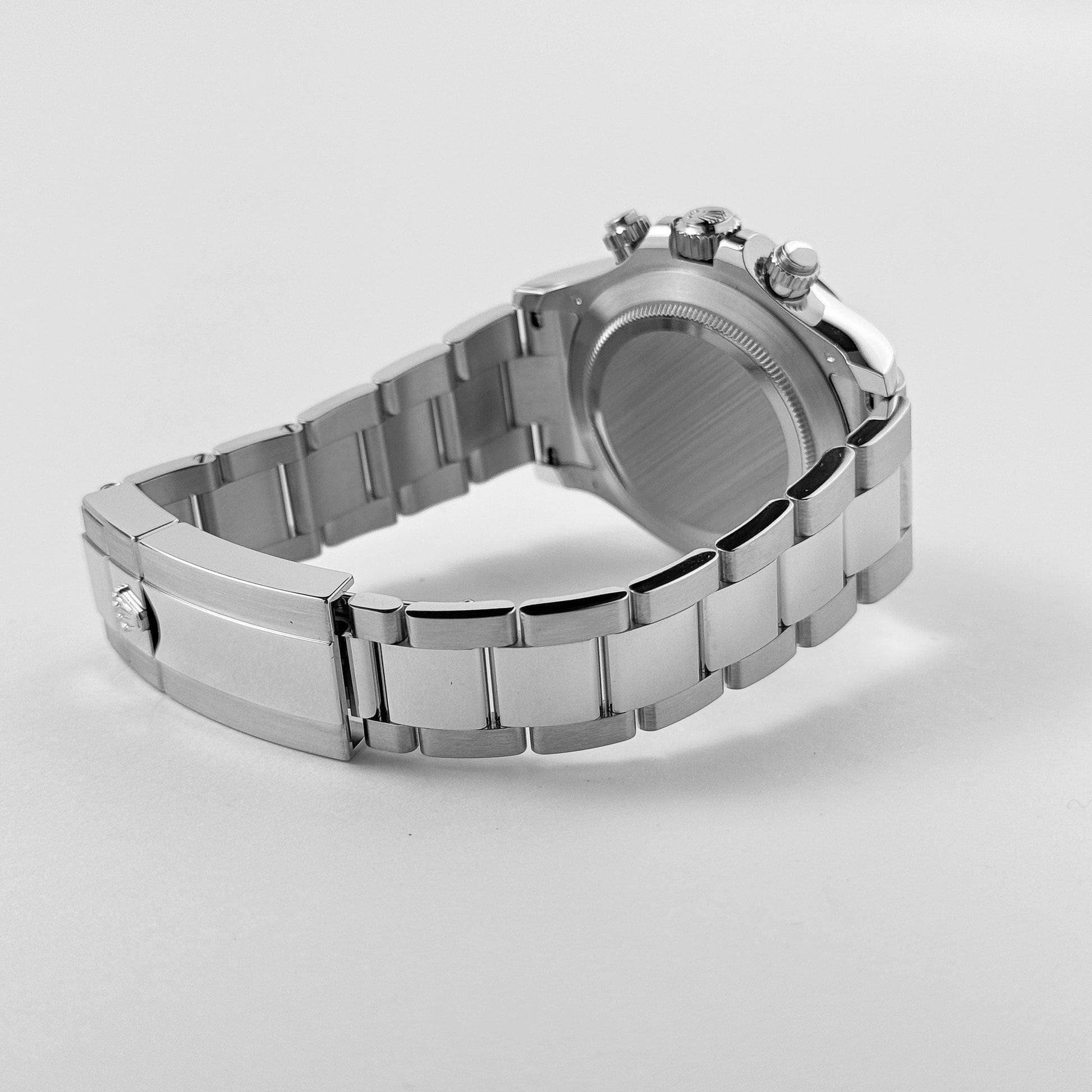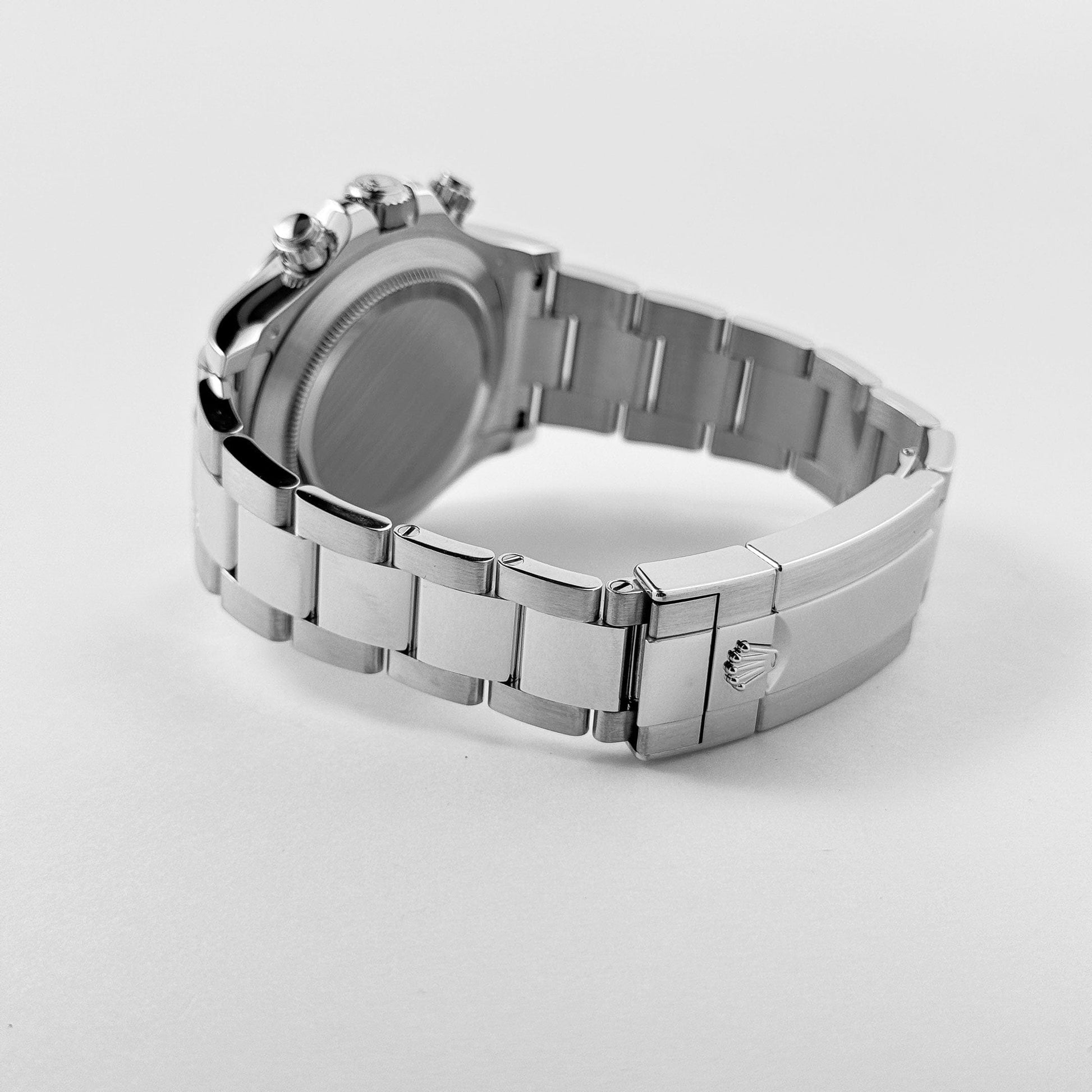 The Rolex Daytona 116506 is a stunning fusion of cutting-edge performance and refined elegance, crafted entirely in 950 platinum. This 40mm timepiece is renowned for its exclusivity and luxurious design, highlighted by the signature ice blue dial, a hallmark of Rolex's platinum models. The baguette diamond hour markers elevate the watch's aesthetic, adding a touch of brilliance to its iconic chronograph layout.