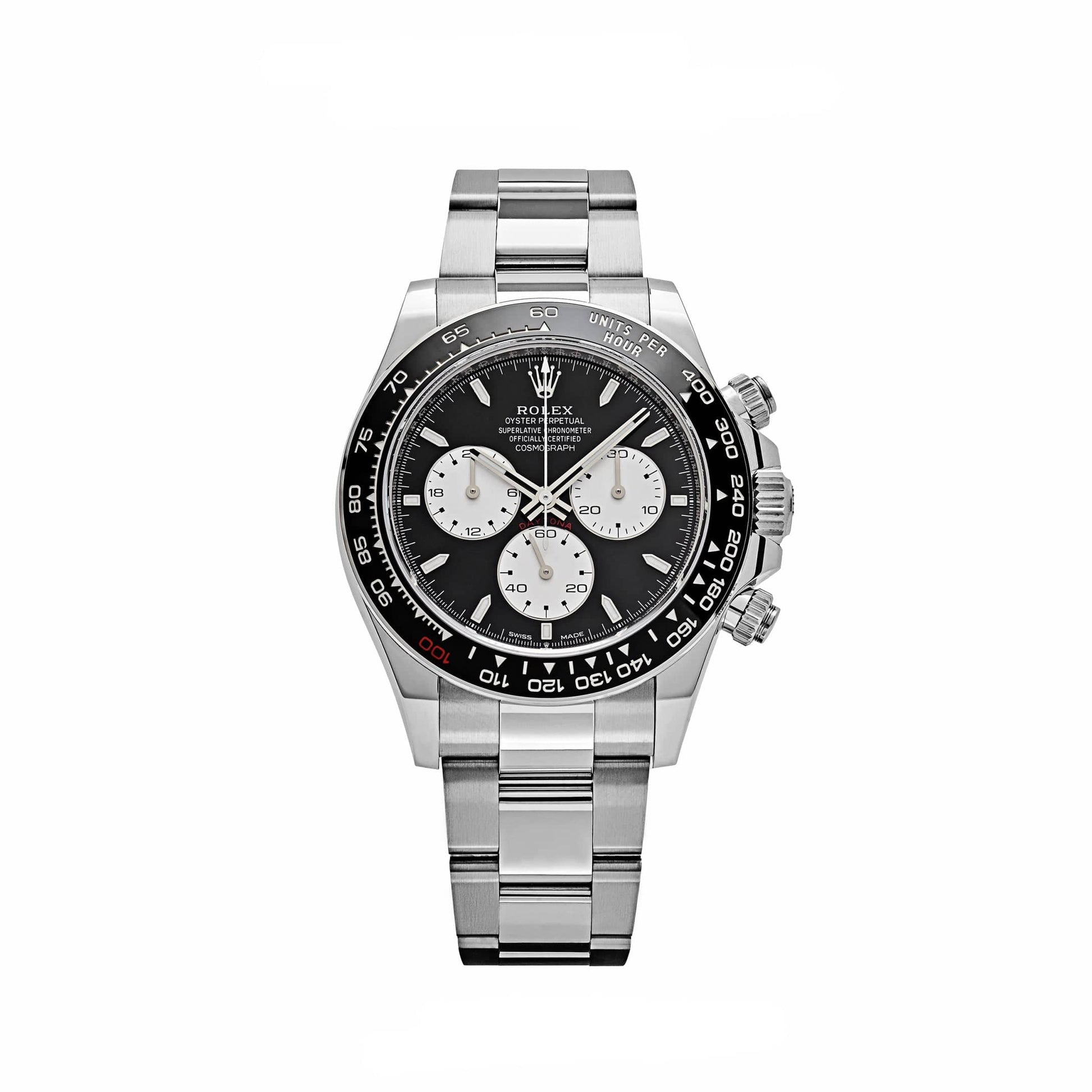 The Rolex Daytona 126529LN "Le Mans" edition is a highly coveted tribute to the 100th anniversary of the legendary 24 Hours of Le Mans endurance race. Crafted in 18k white gold, this special edition stands out with a bold black dial featuring vintage-inspired white subdials that evoke the look of Paul Newman Daytonas—an unmistakable nod to Rolex's historic racing legacy. The red "100" marker on the black Cerachrom bezel replaces the typical “120” in the tachymeter scale, commemorating the centennial milestone of the race in 2023.