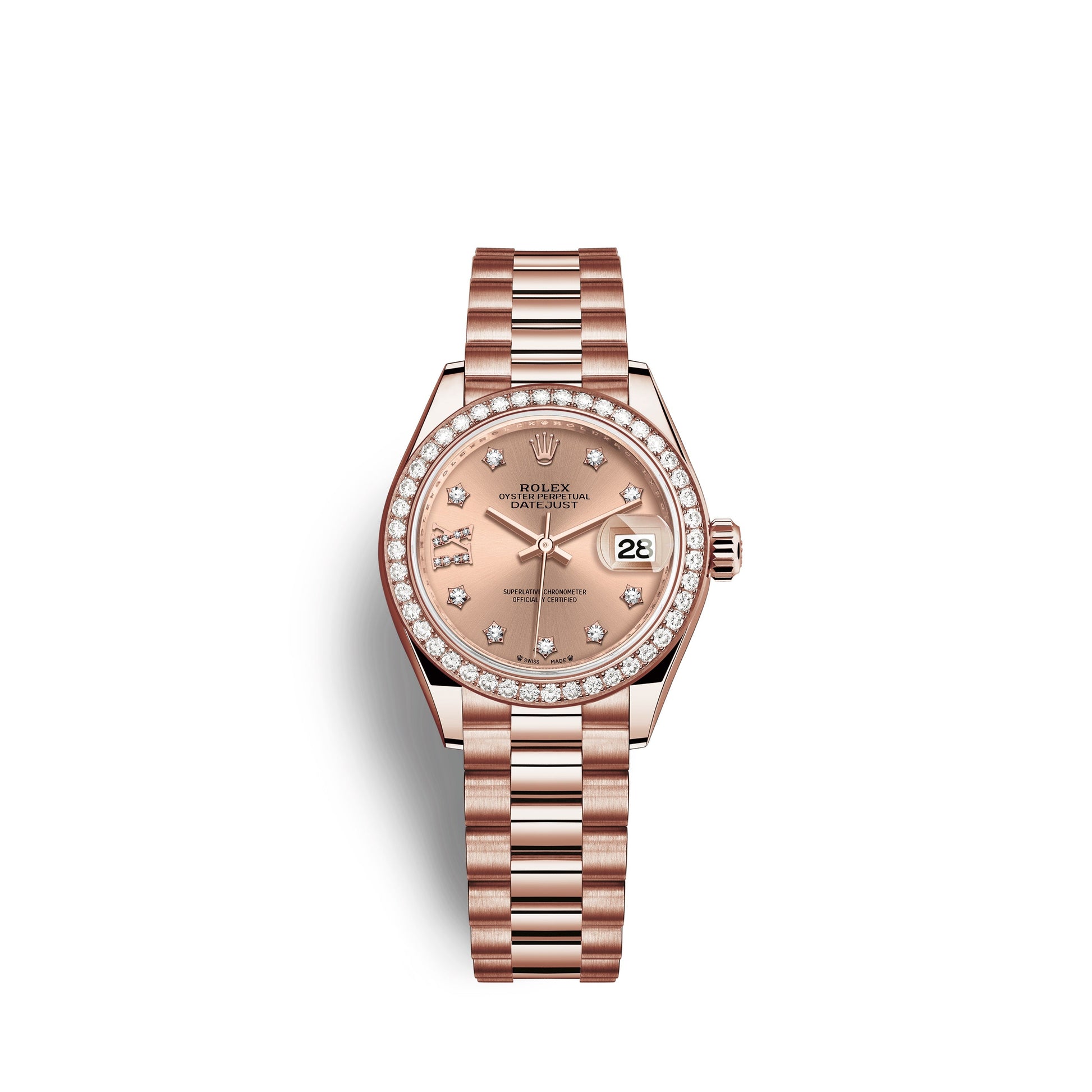 Unworn classic watch Rolex Lady-Datejust 28, 18kt Everose Gold and diamonds, Ref# 279135RBR-0029 - luxury, elegance and practicality.