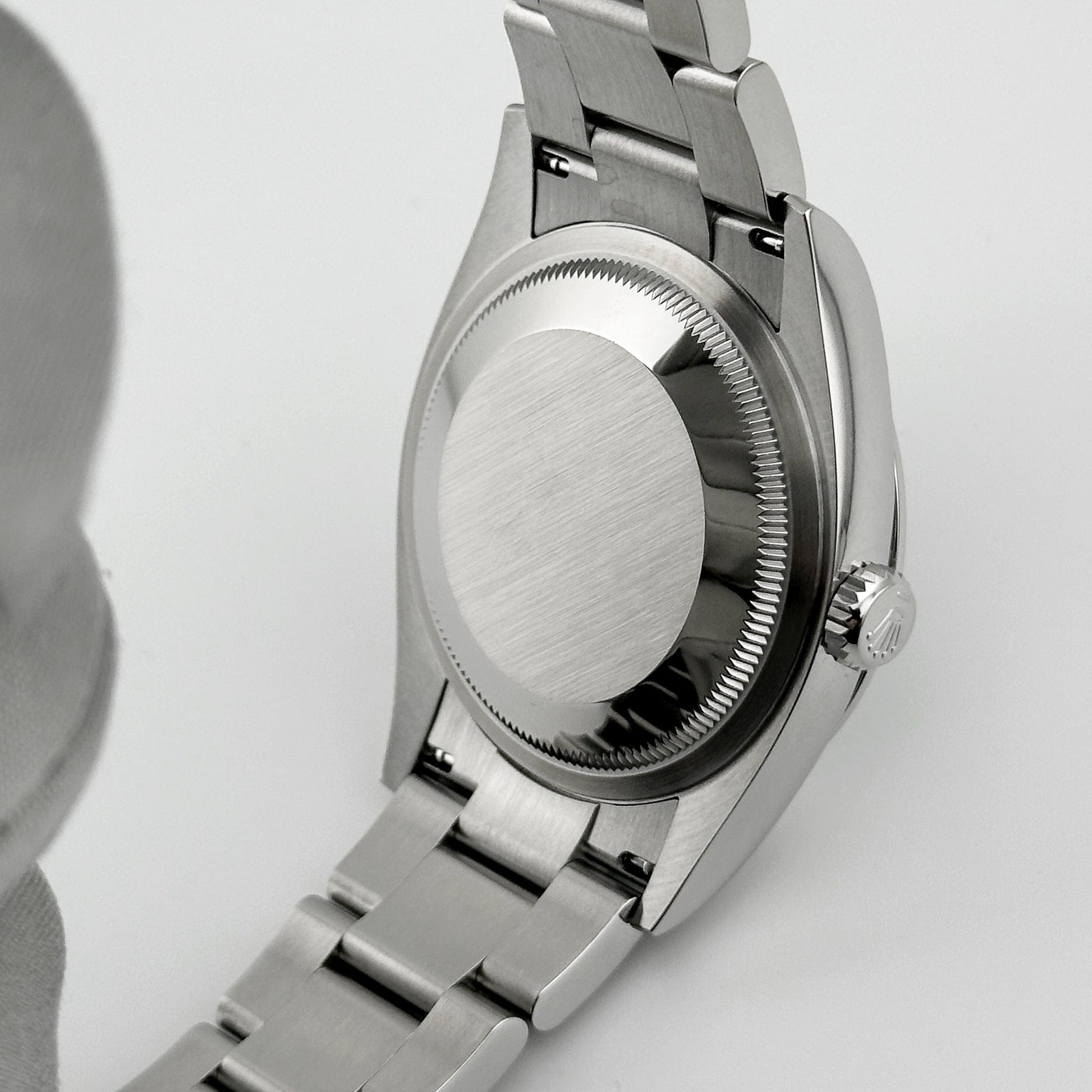 The Rolex Oyster Perpetual 126000 brings a playful and modern edge to Rolex’s classic design. Crafted in stainless steel, the 36mm case is durable and versatile, complemented by a smooth bezel and polished surfaces that enhance its refined appearance.