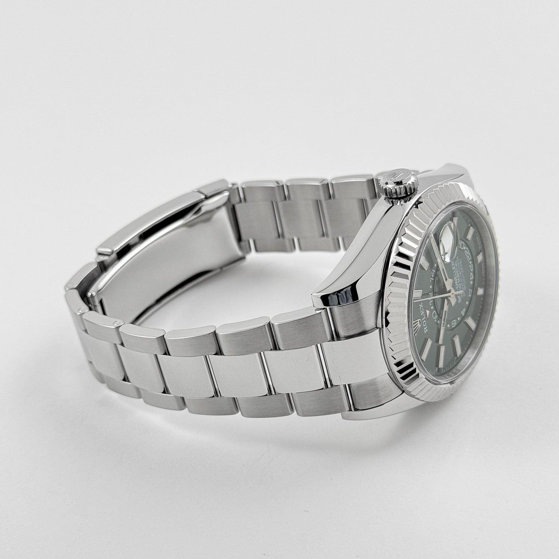 Paired with a robust Oyster bracelet, this Sky-Dweller is not only stylish but also offers 100 meters of water resistance, making it versatile for any environment. With its array of complications and sophisticated design, the Sky-Dweller 336934 is a standout for those who demand both utility and luxury.