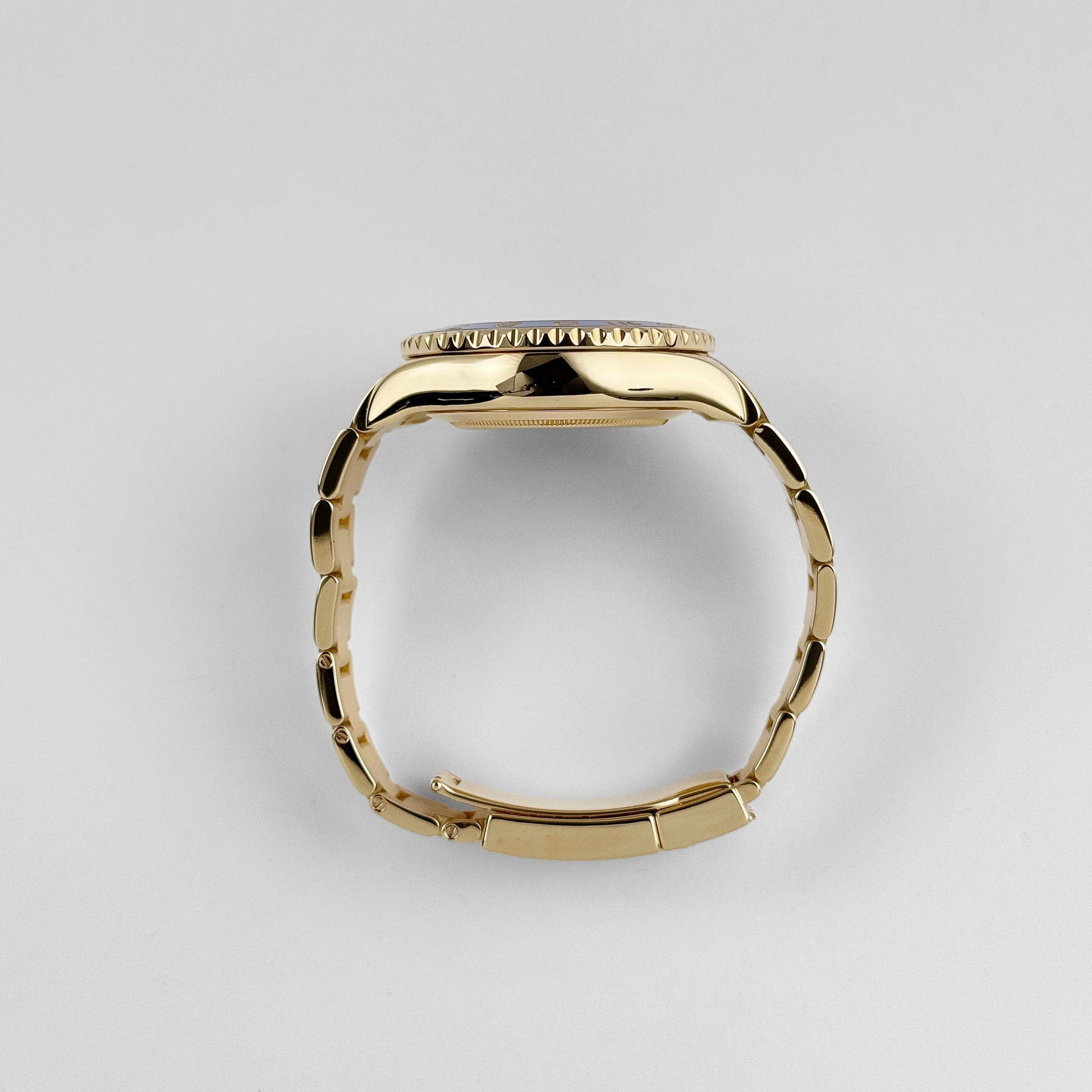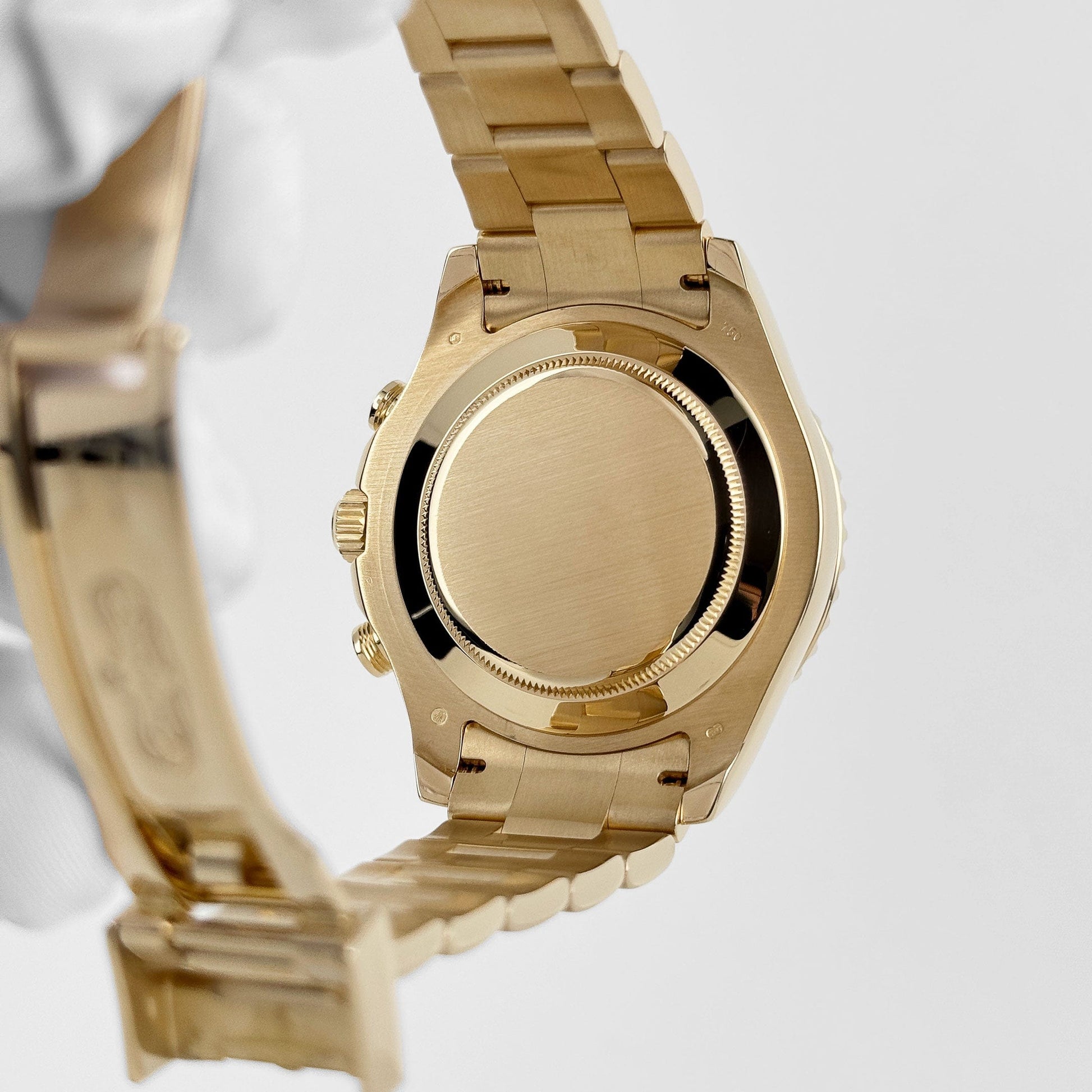 The Rolex Yacht-Master II 116688 in yellow gold is a distinctive and technically advanced timepiece designed for sailors and yachtsmen. Its robust 44mm Oyster case, crafted from 18k yellow gold, exudes luxury and durability, while the white dial provides a crisp, highly legible backdrop for its specialized regatta timer functions. The signature countdown function, controlled via the rotatable Ring Command bezel, allows precise timing for race starts, reflecting Rolex’s commitment to precision and practicality.