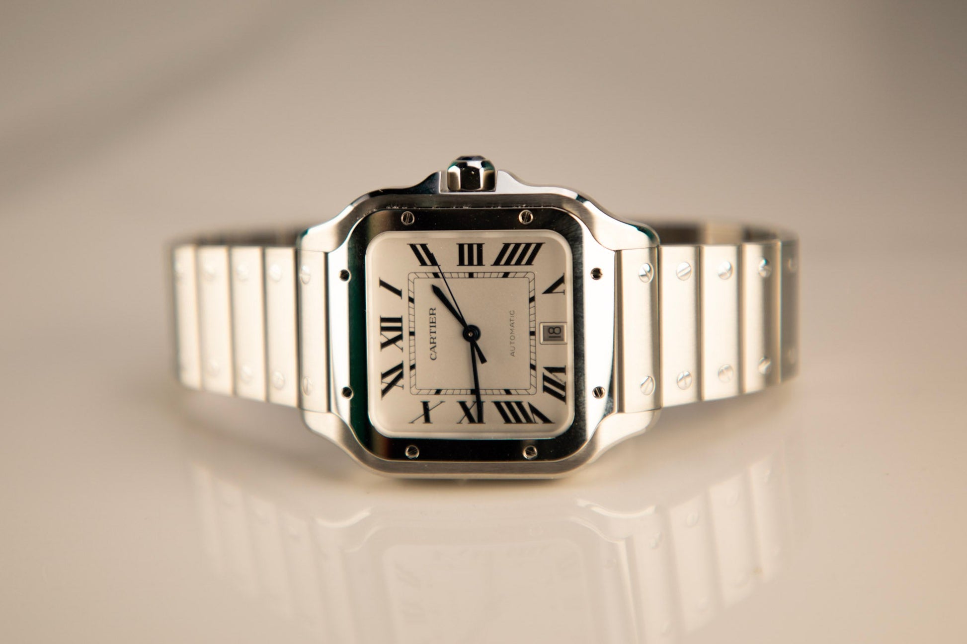 Cartier Santos Large 47.5 mm x 39.8 mm Silver Dial Steel Bracelet WSSA0018