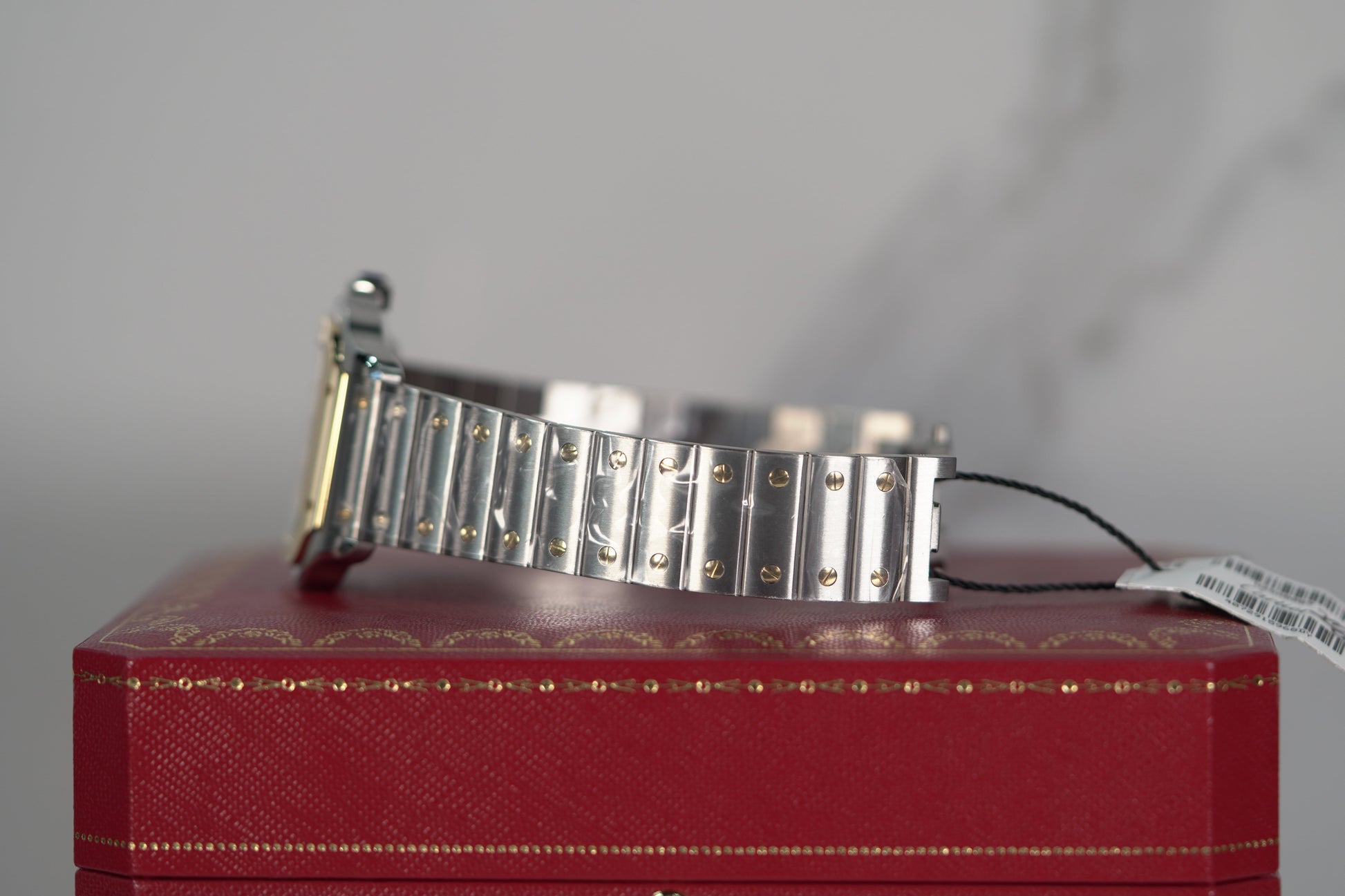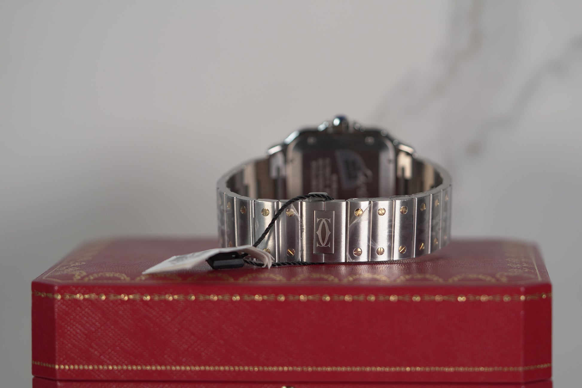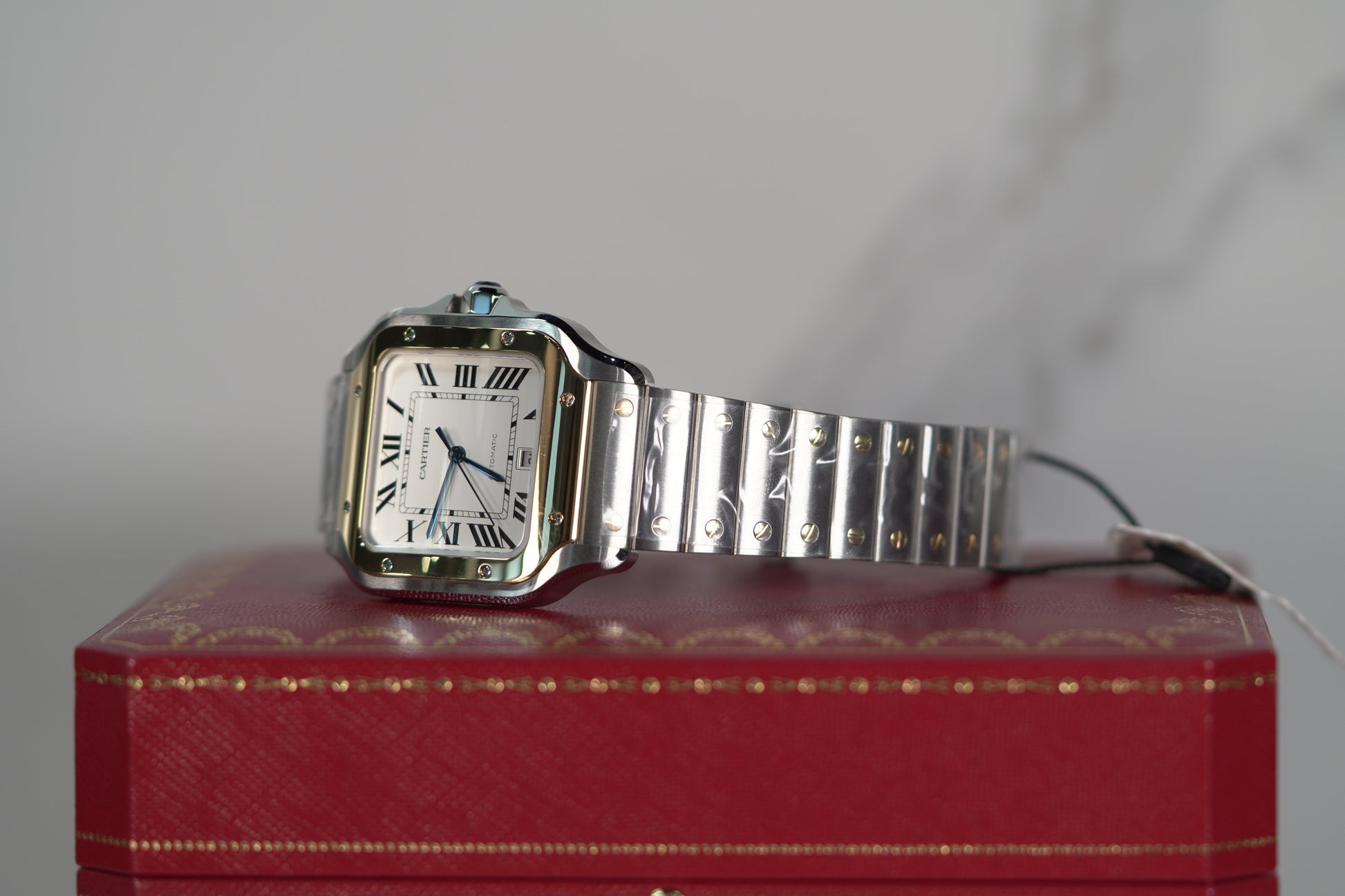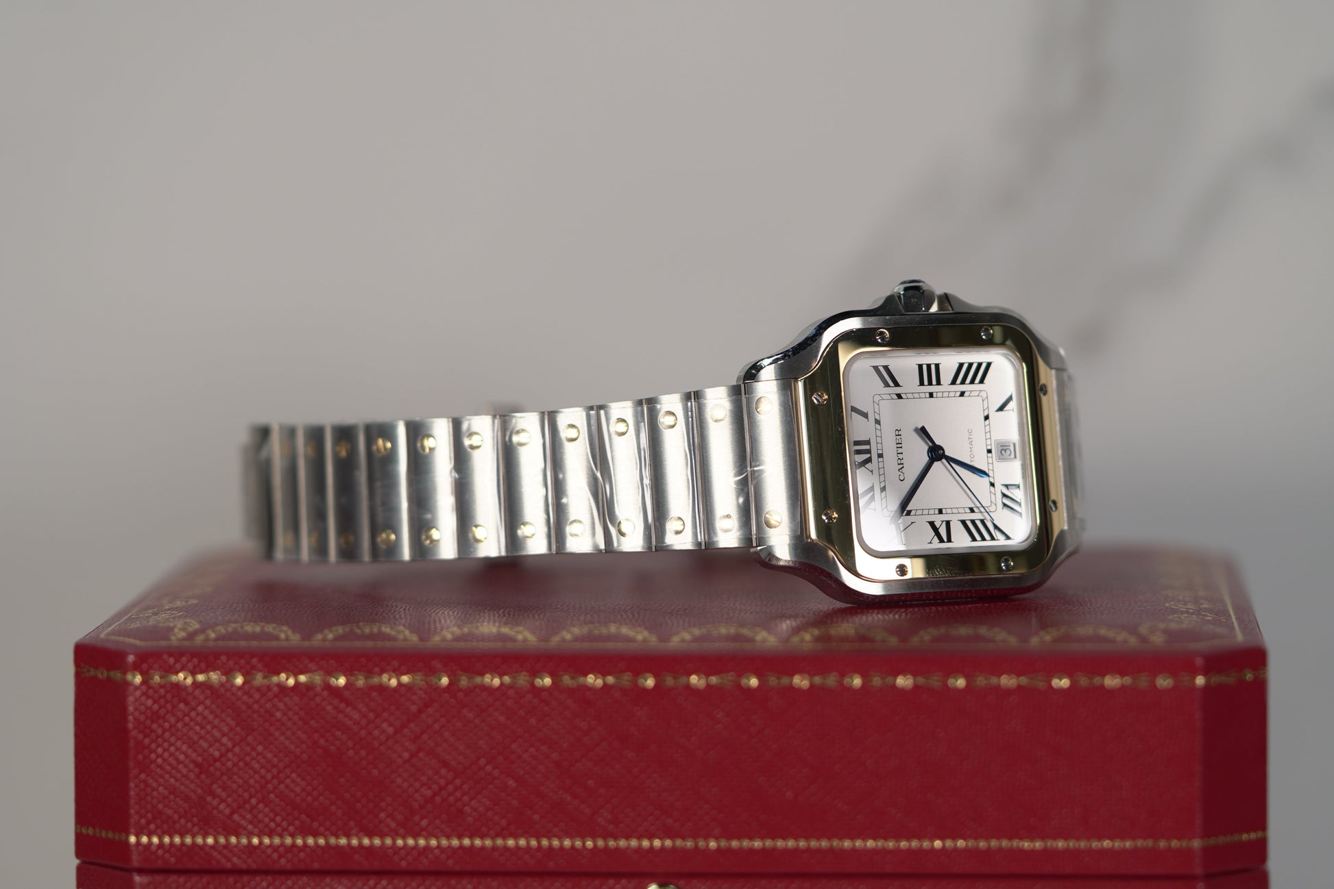 Cartier Santos Large 47.5 mm x 39.8 mm Yellow Gold Silver Dial Steel Bracelet W2SA0009
