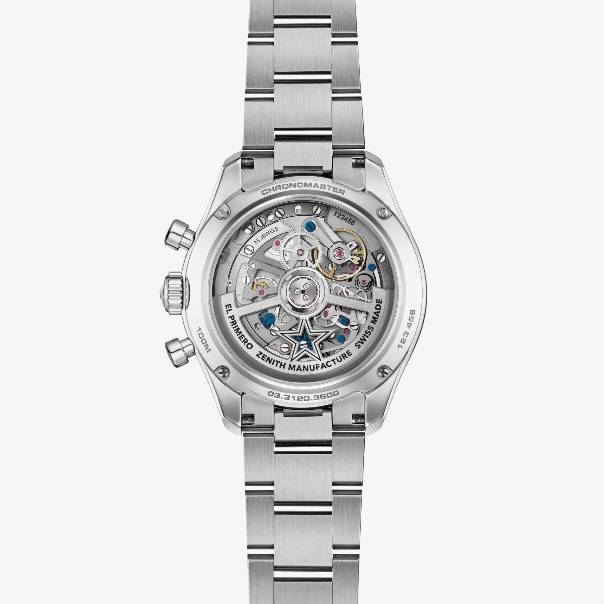 Winner of the 2021 Grand Prix d’Horlogerie de Genève "Chronograph" prize, the Chronomaster Sport is a bold expression of ZENITH’s unrivalled expertise in high-frequency automatic chronographs. Distinguished by its 1/10th of a second precision, it stands as a benchmark in contemporary watchmaking. Now, with a dial crafted from an actual meteorite, it becomes a poetic reminder of time’s cosmic scale.