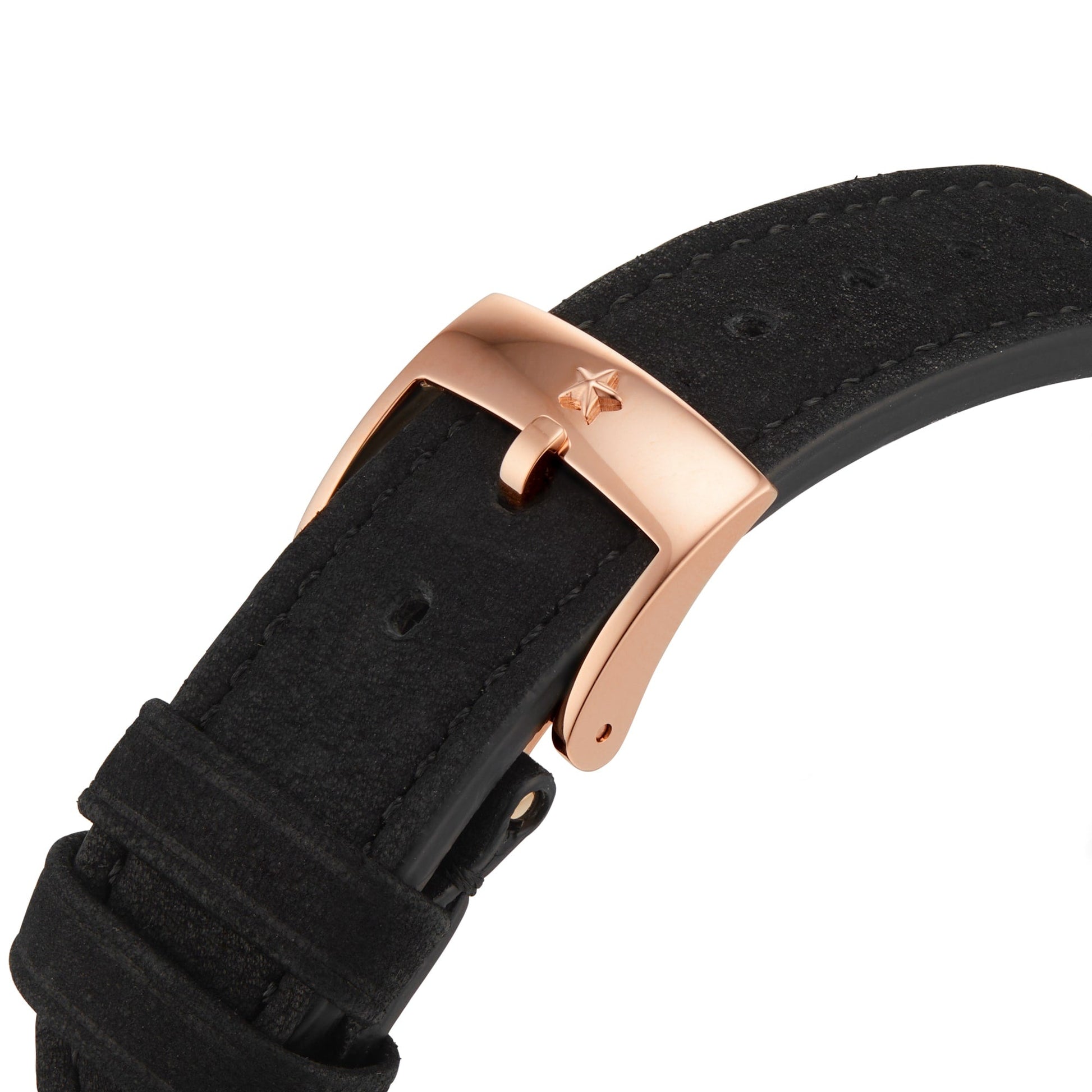 A culmination of over 50 years of mastering the automatic chronograph Presented in a modern 18K rose gold case White dial with three counters, each in a metallic tone Measures and displays elapsed time with 1/10th of a second precision Driven with precision by the iconic El Primero 3600 movement A SPORTING ICON Bridging the past and present, the Chronomaster collection embodies the brand’s mastery of automatic, high frequency chronograph movement and the unique design language established over the course of 50 years. The Chronomaster Sport brings together elements of Zenith’s most iconic models, including tri-colour dials, pump-style pushers, and a black ceramic bezel, all housed within a 41mm case. THE ULTIMATE PRECISION Driven by the El Primero 3600, this high performance sporting timepiece is accurate to 1/10th of a second. Housed within an 18K rose gold case and framed by a black ceramic bezel, the white dial makes a bold statement with three counters in varying metallic tones - a 60-minute counter at 6 o’clock, 60- second counter at 3 o’clock, and small seconds counter at 9 o’clock. A black leather strap completes the active aesthetic, while an extended, 60-hour power reserve ensures flawless, uninterrupted performance.