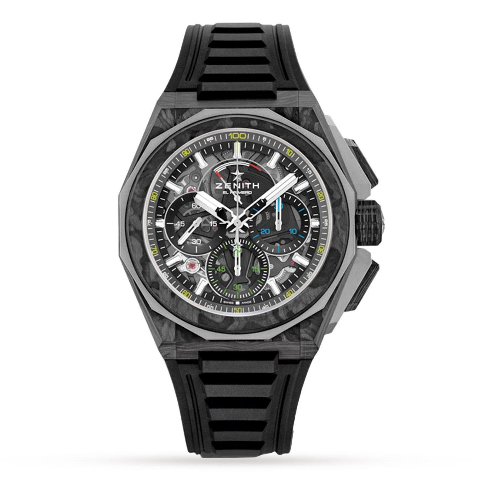 Defy Extreme – exceed your horizons Sleek and evocative design meets unprecedented function Presented in a 45mm brushed titanium case Tinted sapphire dial with three black counters Driven by the ground-breaking El Primero 21 high-frequency with a 50 hour power reserve DARE TO DEFY YOUR HORIZONS Transcend the confines of your horizons and assert your style with the Defy Extreme collection- where modern design meets urban flair. Crafted for trailblazers who challenge convention, the pieces in this collection are distinguished by daring silhouettes, rugged outlines and an unmistakable bold allure. Carve your own path and redefine your style with the Defy Extreme collection- a call to shatter the norm and defy the horizons that lie ahead. A BOLD STATEMENT WITHIN A MODERN COLLECTION Dare to challenge the status quo with this modern design of the Defy Extreme collection- where modern style boasts a rugged edge. This piece is crafted in light yet durable carbon fibre and titanium, enwrapped in a 45mm case for streamlined elegance. The tinted sapphire dial champions the colours of the EXTREME E ‘X Prix’ electric rally races, with three black-coloured counters for a sleek finish. Crafted with a seamlessly striking mechanical design and urban accents, prepare to unleash your individuality. Champion modern urban style with interchangeable red and black rubber straps, with an additional black Velcro strap for versatile ease. Break the mould with the Defy Extreme Carbon- the paragon of masculine edge. Featuring a 1/100th of a second Chronograph and driven by state of the art El Primero 21 automatic movement, this design also features two escapements beating at 50Hz and 5Hz.