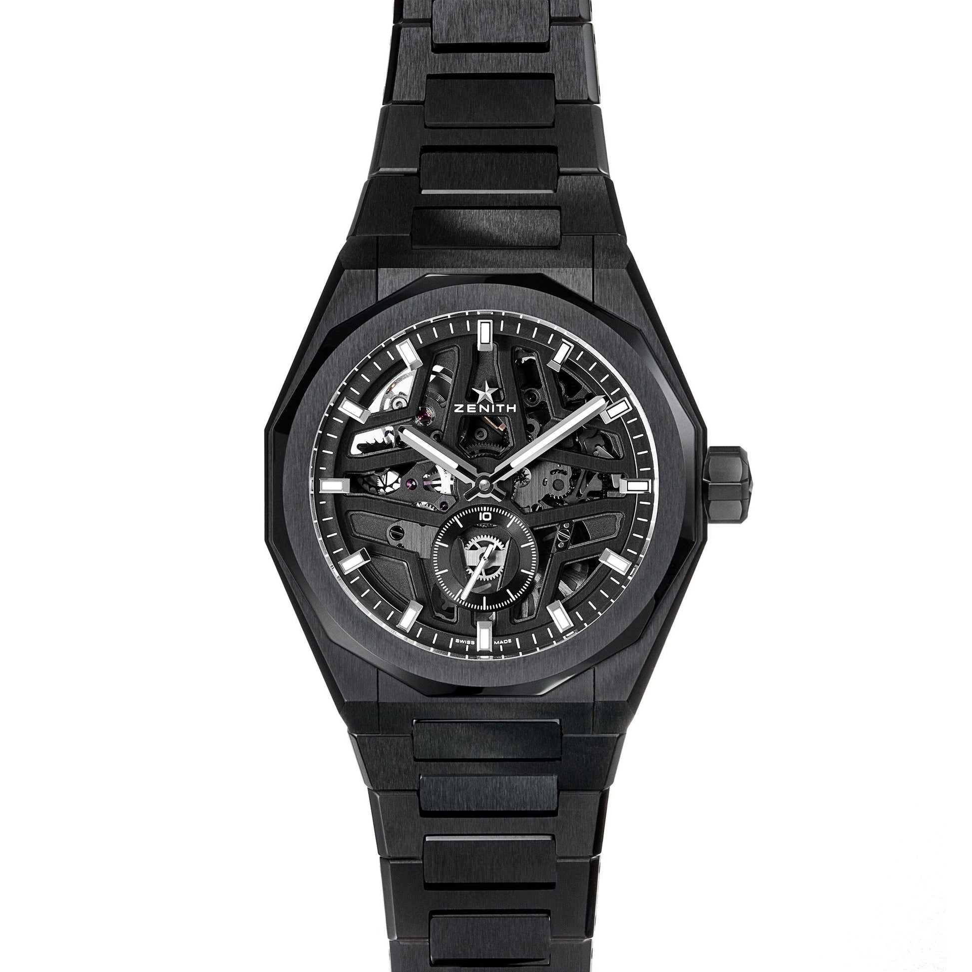 Defy Skyline – the Defy for the new era Sleek and evocative design meets unprecedented function Presented in a 41mm steel octagonal case with a faceted bezel Blue open dial, revisiting the emblematic Zenith four-pointed star Driven by the El Primero 3620 high- frequency automatic manufacture movement, with a 55 hour power reserve BREAK BEYOND THE BOUNDARIES OF THE CITYSCAPE Break beyond the boundaries of the cityscape and make a statement with the Defy Skyline collection- where modern design meets the relentless pursuit of individuality. Engineered for those who forge their own path, the models in this collection are characterised by bold silhouettes, geometrical dials and urban sophistication. Elevate your style and break free from the ordinary. BOLDER IN BLACK- A STELLAR EDGE TO A CLASSIC DESIGN Take command with this sleek take on a classic DEFY Skyline collection. Draped in midnight black ceramic, this model exudes urban allure and an uncompromising bold finish, enwrapped in a 41mm octagonal case with a faceted bezel. Carefully crafted with sharp angles and an open geometric dial, this design is equally striking and durable for the modern man. Fuelled by the cutting-edge El Primero high-frequency automatic manufacture movement, this model sets unprecedented standards with the world’s first 1/10th of a second indicator, championing precision and accuracy with every movement. Embrace versatility and adaptability for any occasion with a quick strap-change mechanism, effortlessly transitioning between a sleek ceramic bracelet and black rubber strap. Elevate your style and demand the spirit of innovation with the DEFY Skyline Skeleton, a timepiece that transcends tradition and embraces the future.